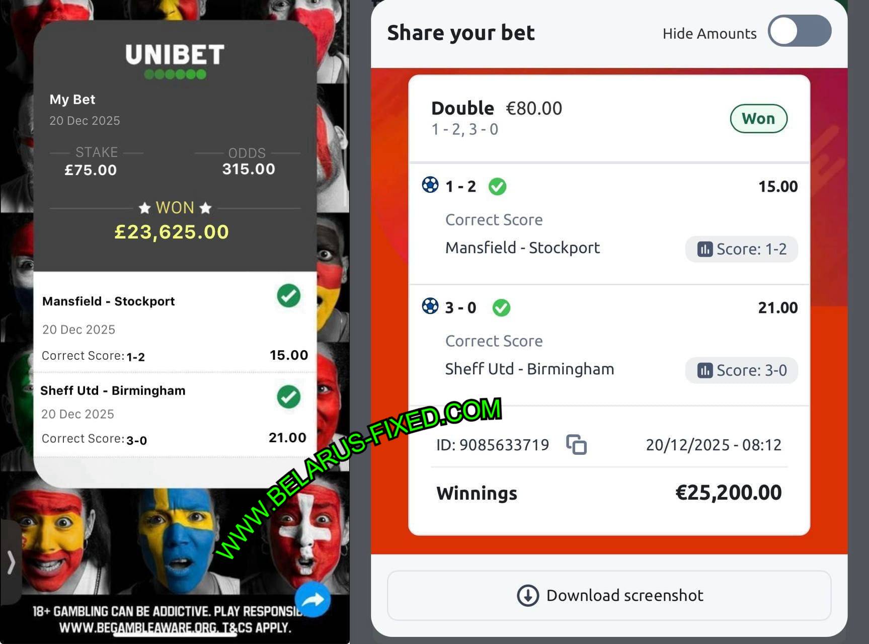 Discover the best deals on free fixed matches, manipulated fixed games, and purchases of fixed matches. Secure your fixed football match today and enjoy substantial wins! Belarus Fixed guarantees a 100% winning rate on correctly paid fixed secured games.