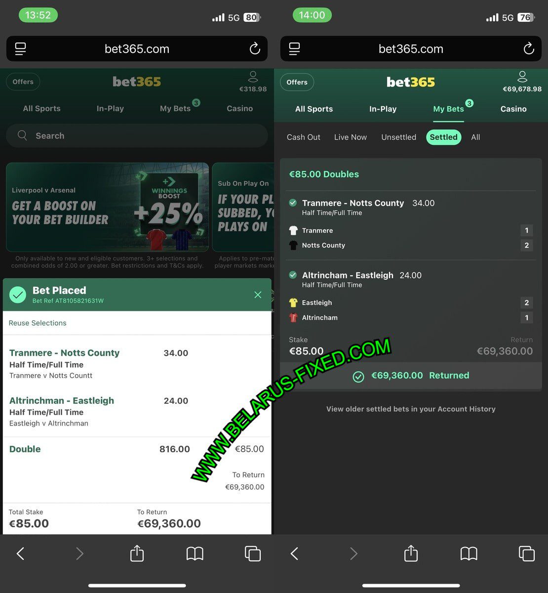 CHECK BET365 PLACE BET AND AFTER WIN PROOF OF 09/08/2025 (SATURDAY) 552.00 ODDS WON
