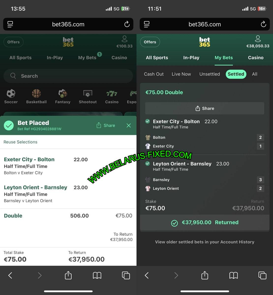 If you want view more archive for DOUBLE HT / FT matches, check out on the next link: BET365 HT/FT FIXED MATCHES.