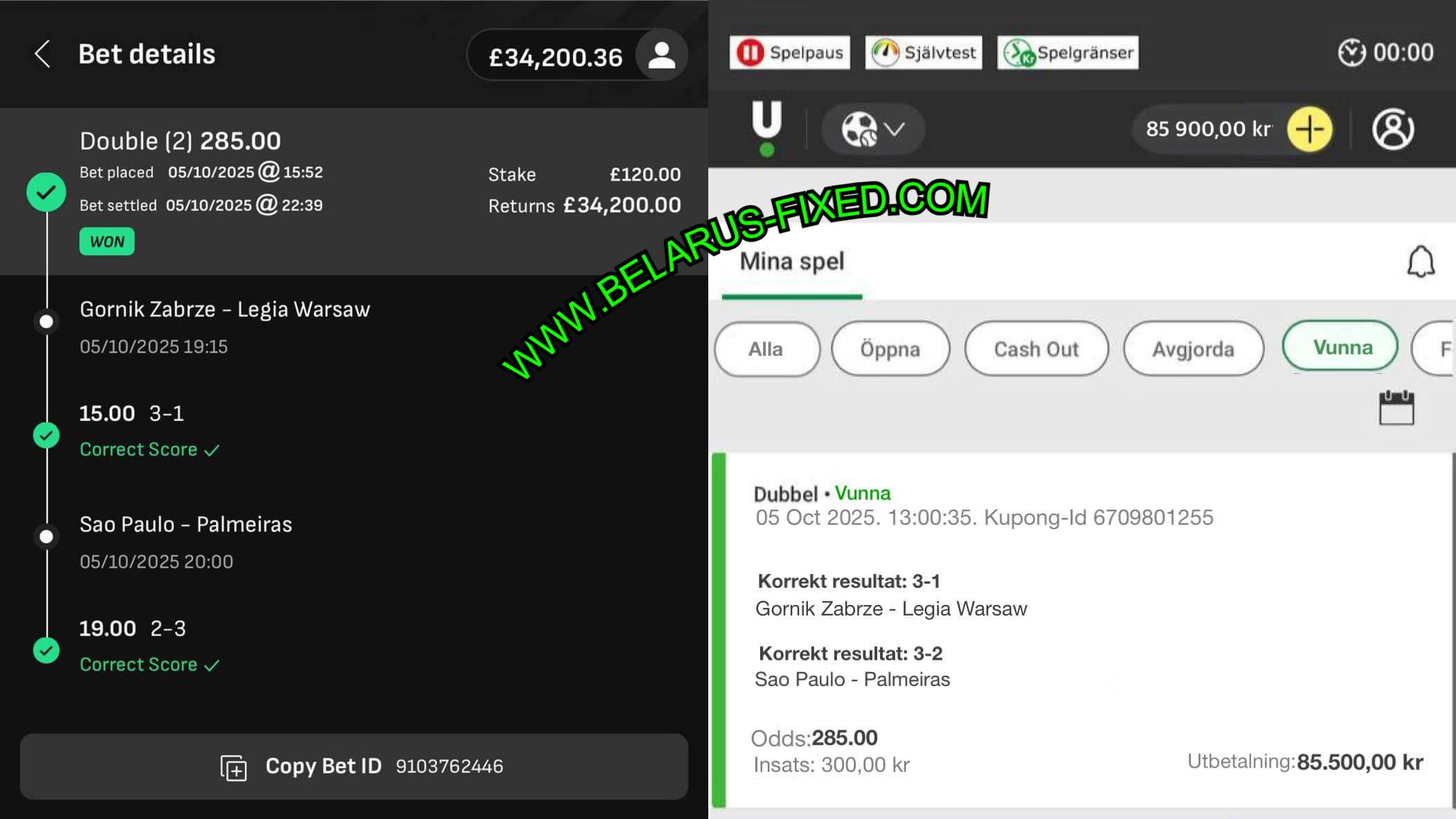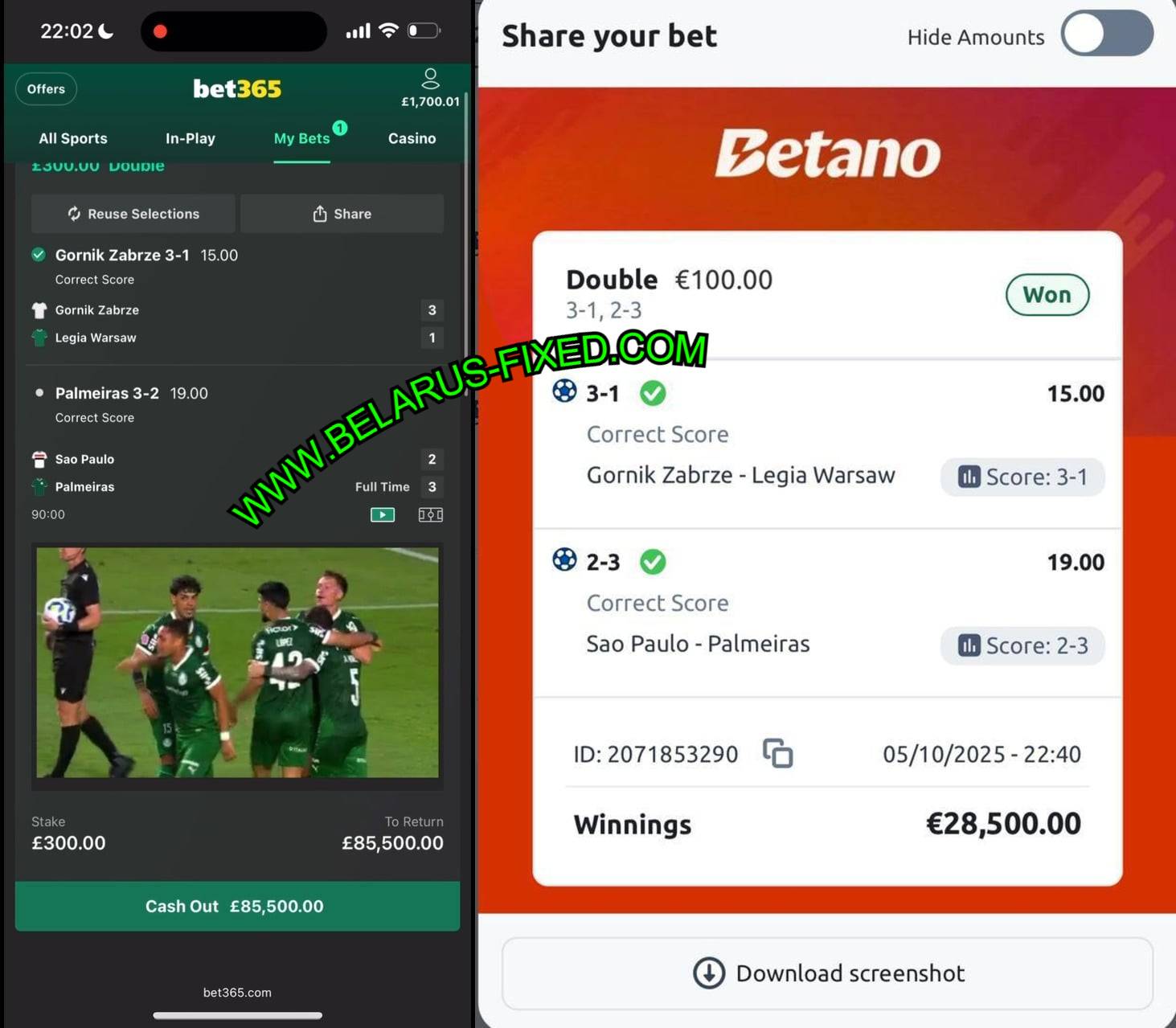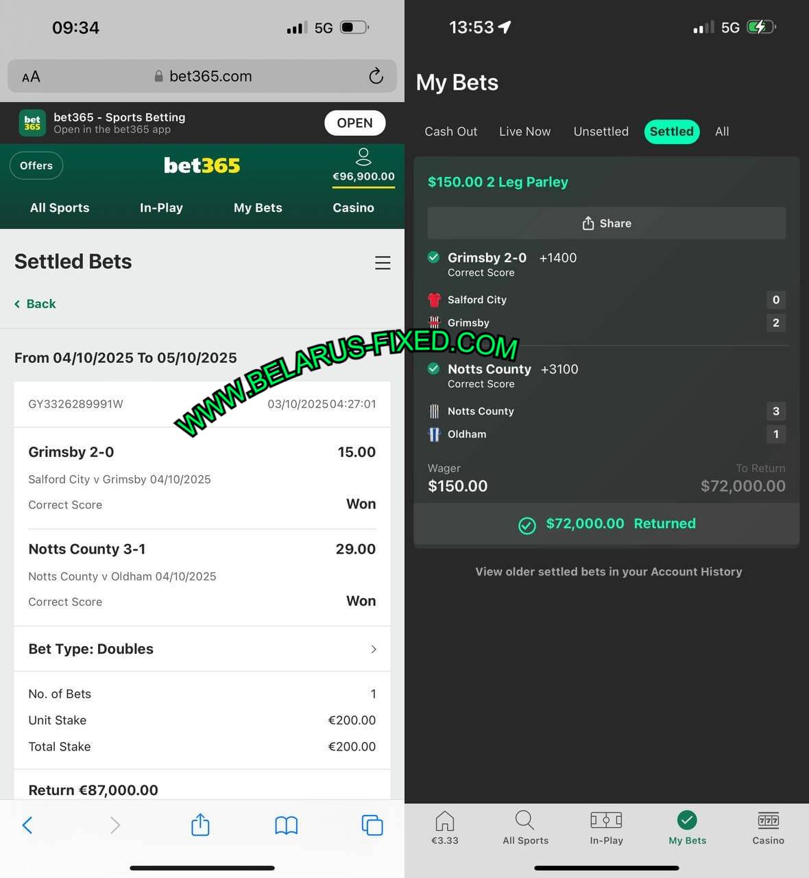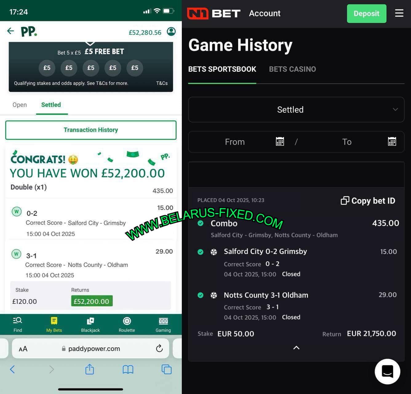 MOBILE FROM MULTIPLE BOOKMAKERS PROOFS OF 05/10/2025 (SUNDAY) 285.00 ODDS WON
