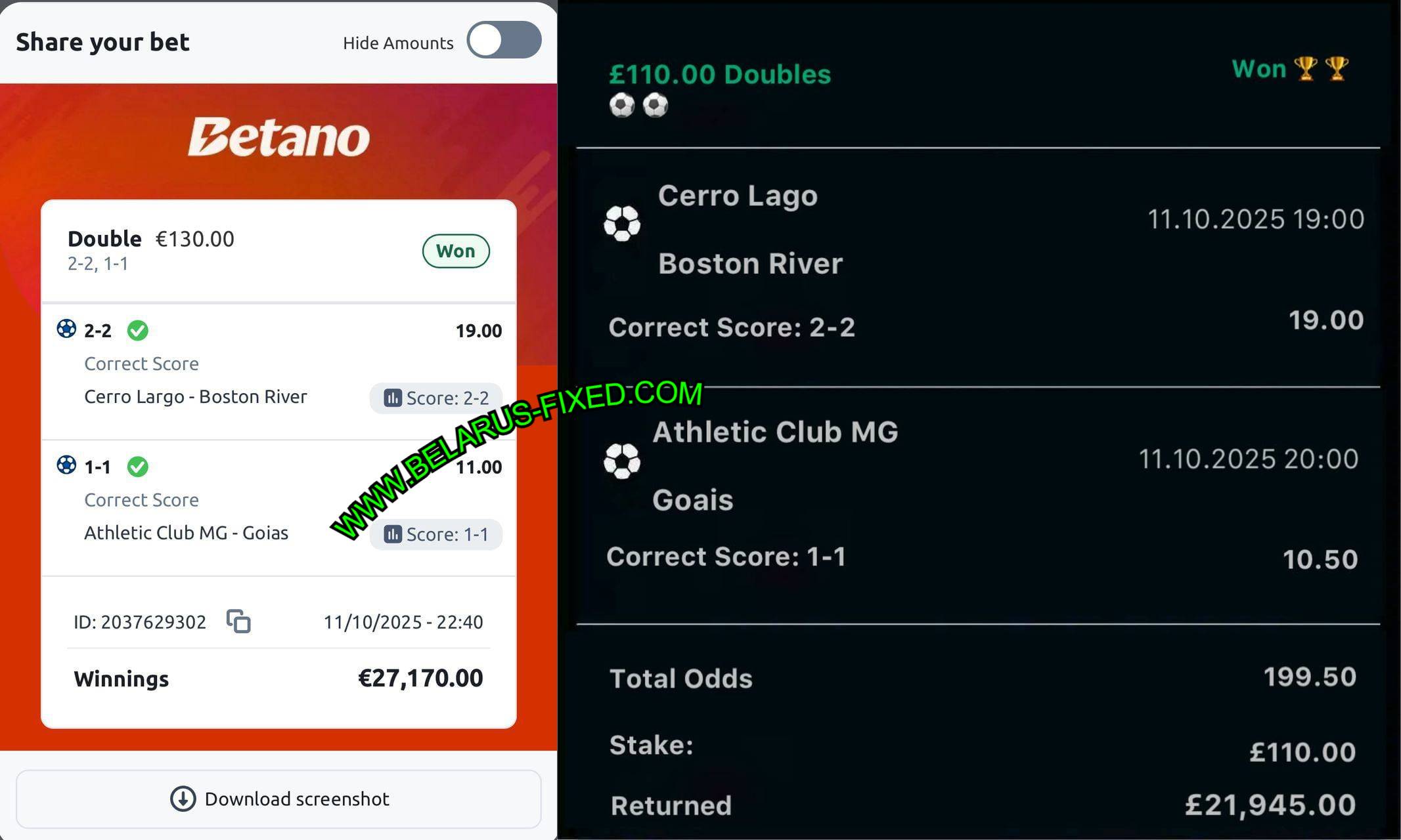 MOBILE FROM MULTIPLE BOOKMAKERS PROOFS OF 11/10/2025 (SATURDAY) 209.00 ODDS WON