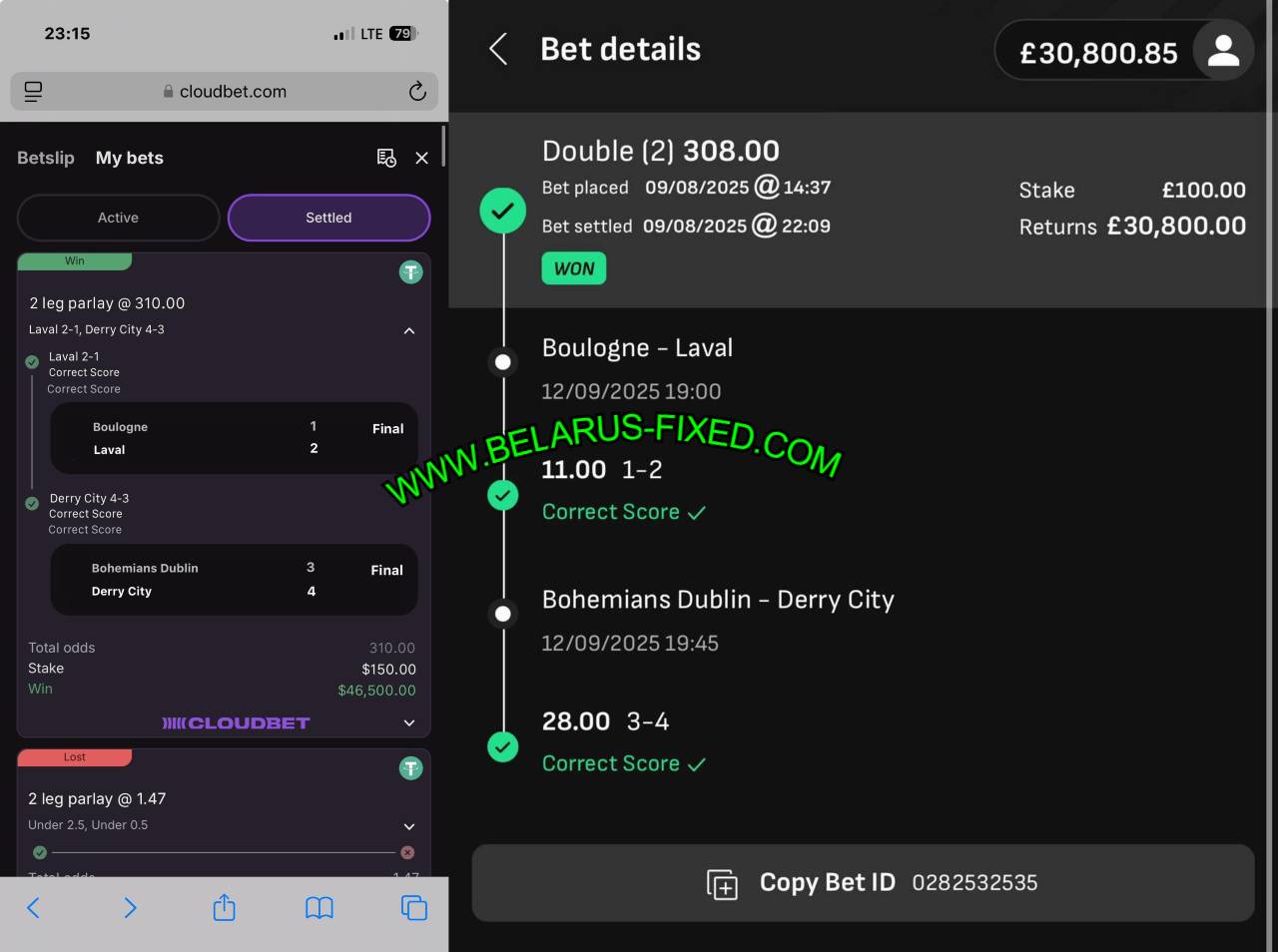 | Bohemians vs Derry City | 3:4 (CS) | 28.00 | FT: 3:4 WIN |