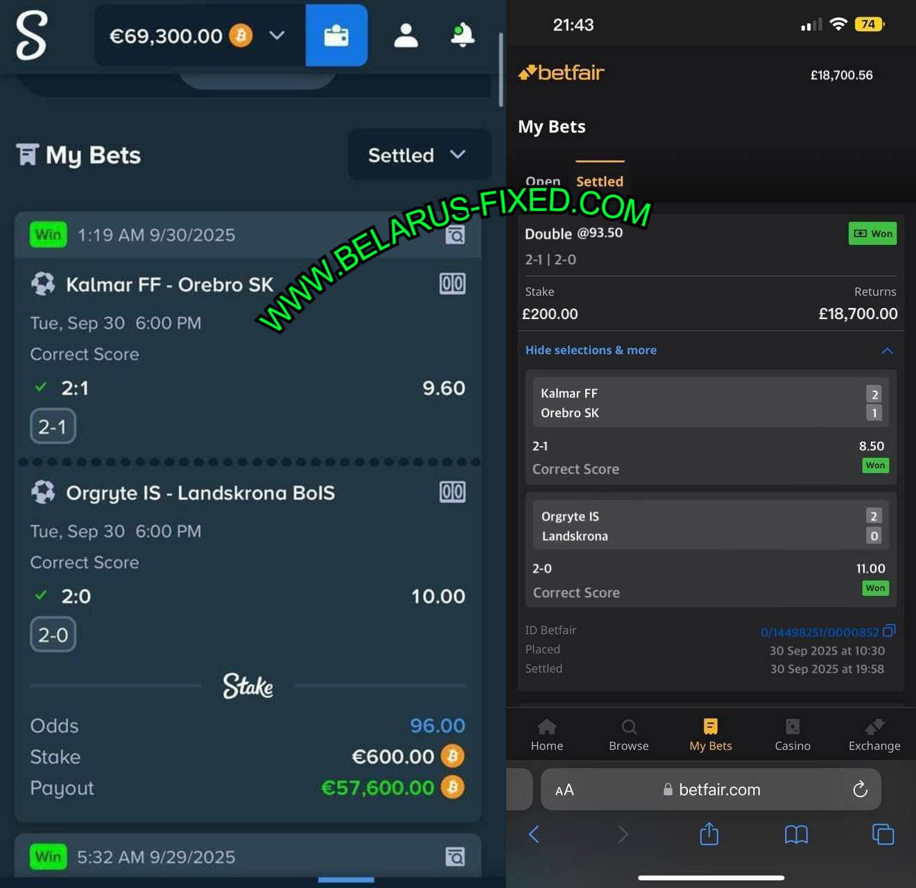 MOBILE FROM MULTIPLE BOOKMAKERS PROOFS OF 30/09/2025 (TUESDAY) 90.00++ ODDS WON