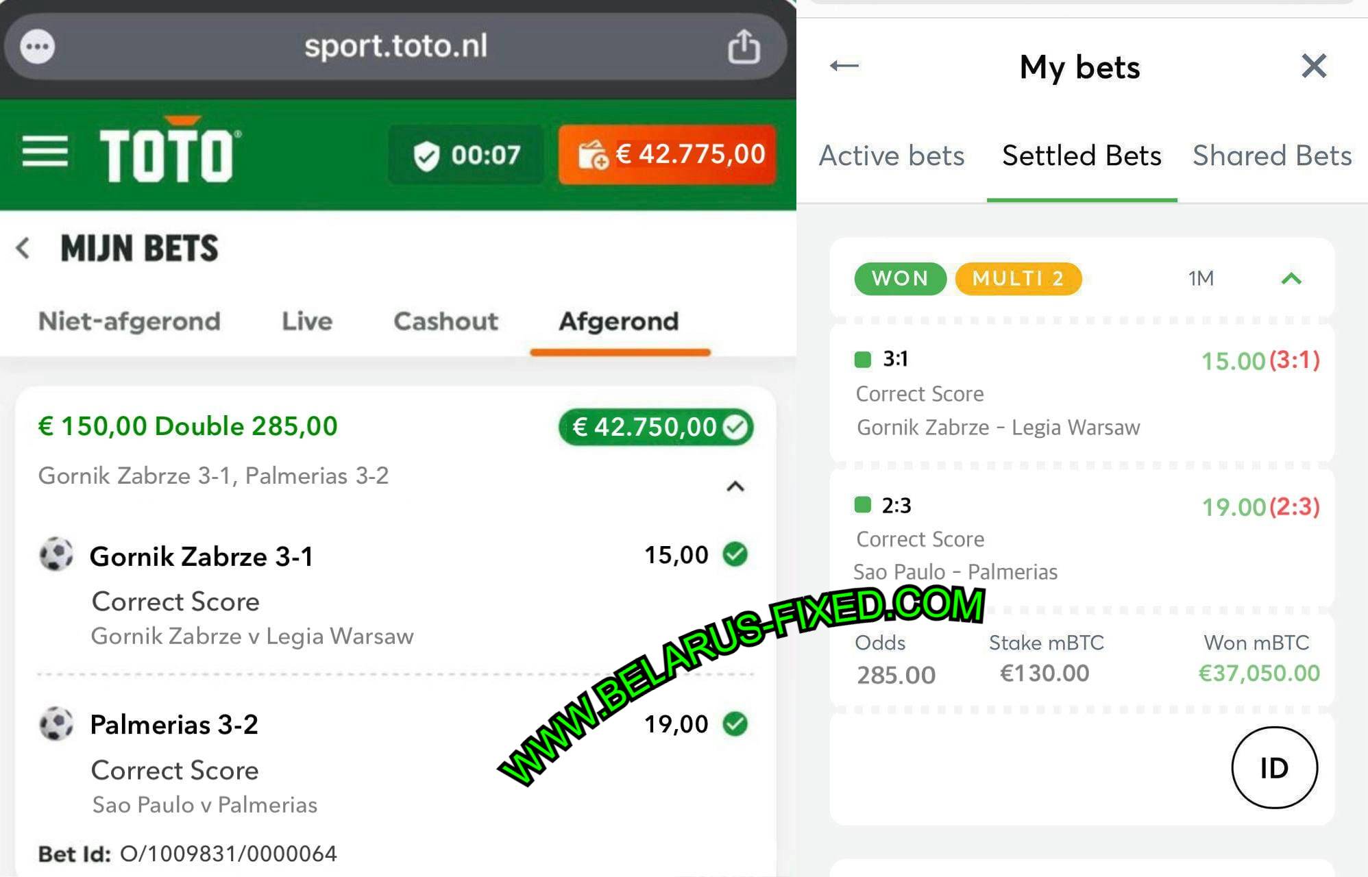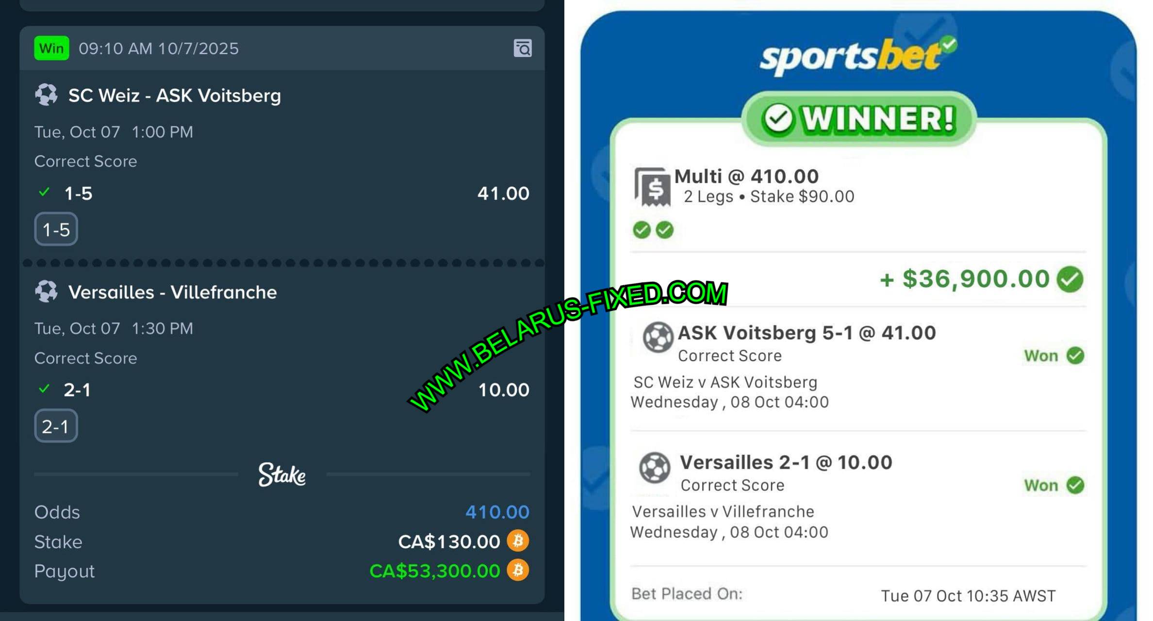 TIP: 2 CORRECT SCORE FIXED MATCHES