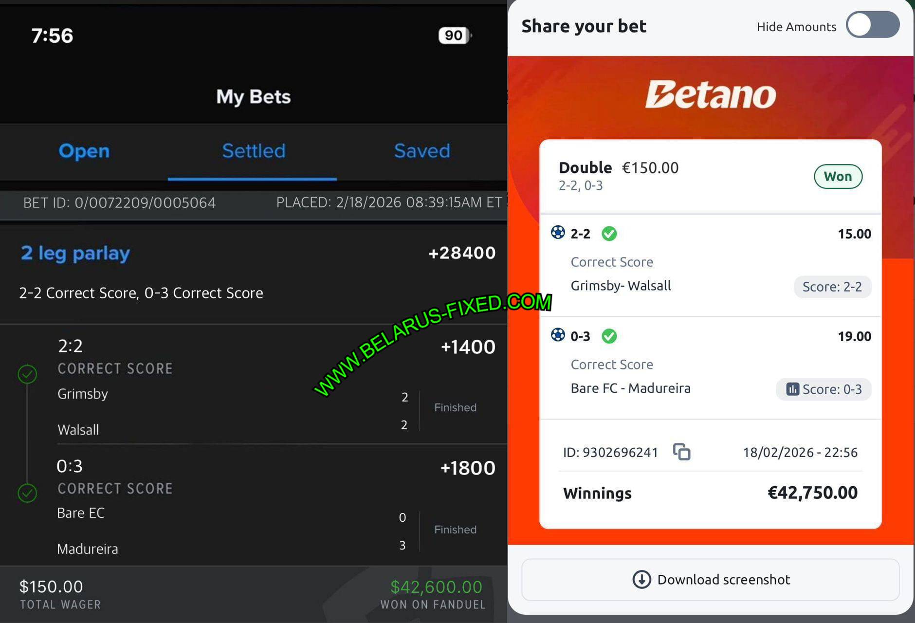 NEW MOBILE FROM MULTIPLE BOOKMAKERS PROOFS OF 18/02/2026 (WEDNESDAY) 285.00 ODDS WON