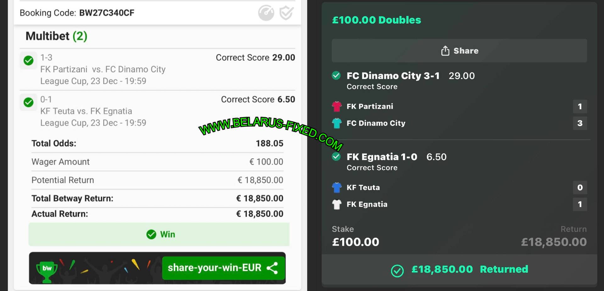 TIP: 2 CORRECT SCORE FIXED MATCHES